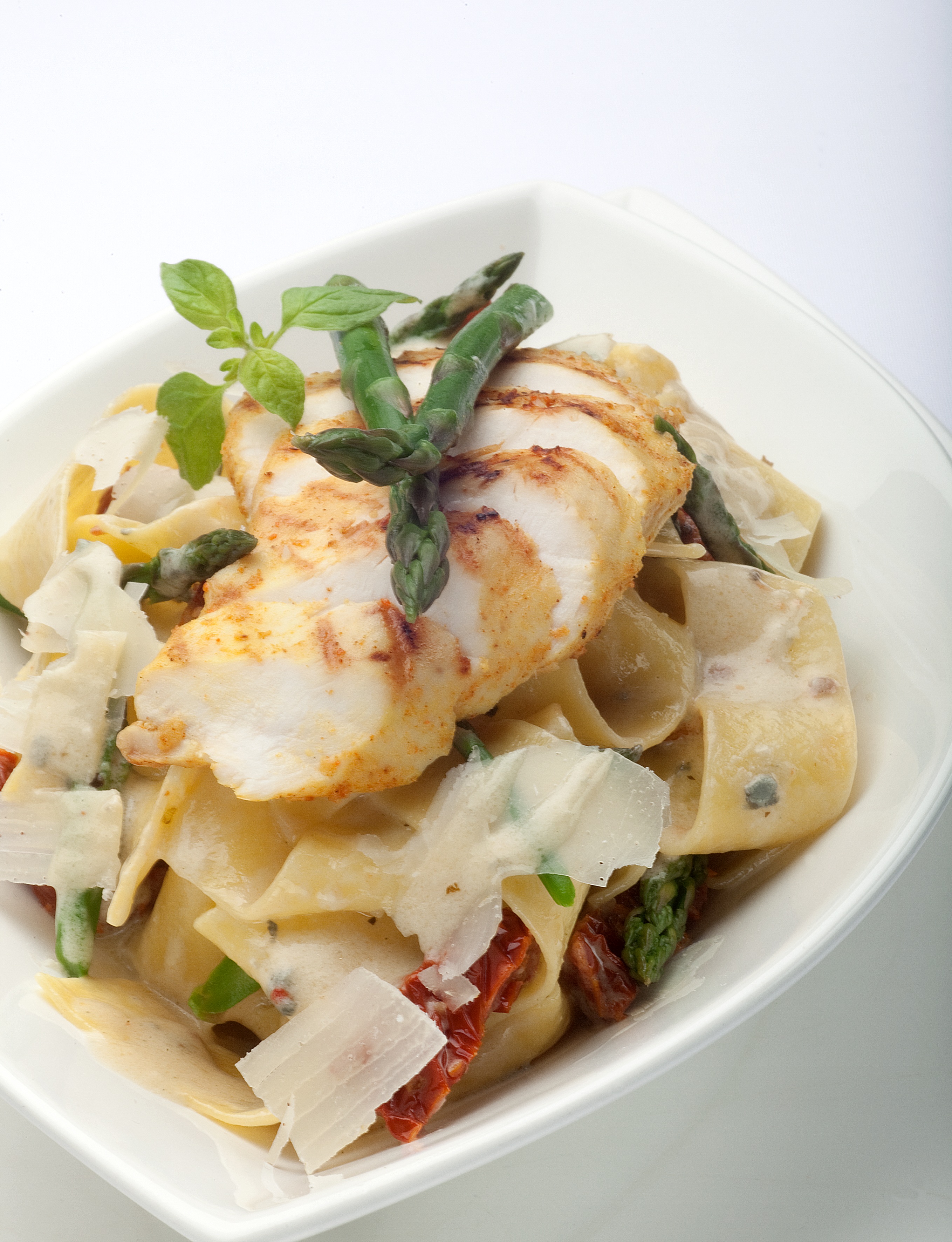 Grillowana piers Kurczaka Zagrodowego z makaronem i szparagami